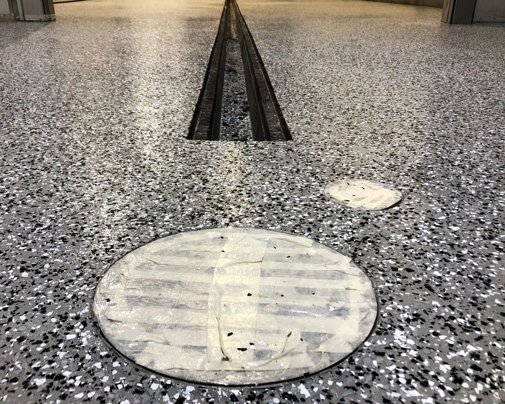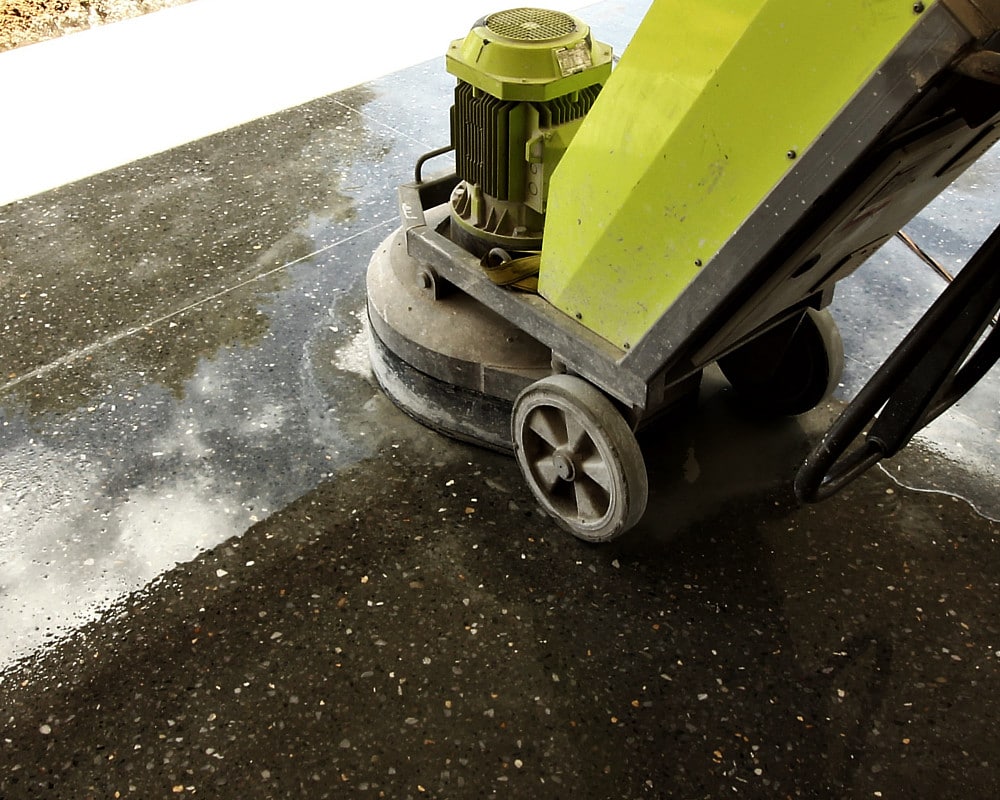 Preparation is achieved via diamond abrasion, this is done by concrete grinding technology, using metal bond diamond tools. Thus, creating a keyed surface profile. This ensures the coating has the highest level of surface area to adhere. As well as creating a clean porous surface to enable penetration. When a coating cures on a correctly prepared surface, it does not peel of bubble.
